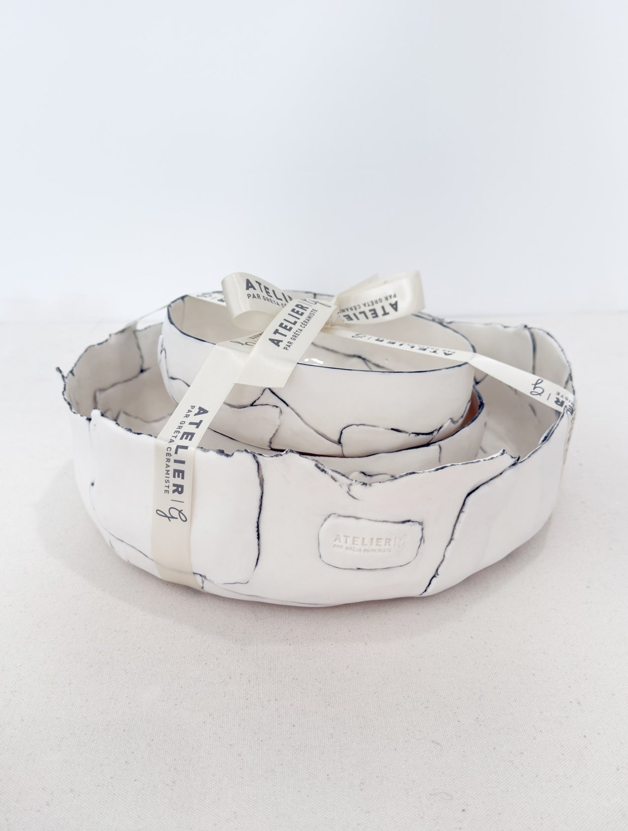 Dans la collection De Blanc et Noir, le bol Horizon accompagné de deux bols repas. Ensemble idéal pour vos pâtes, salades, couscous.....