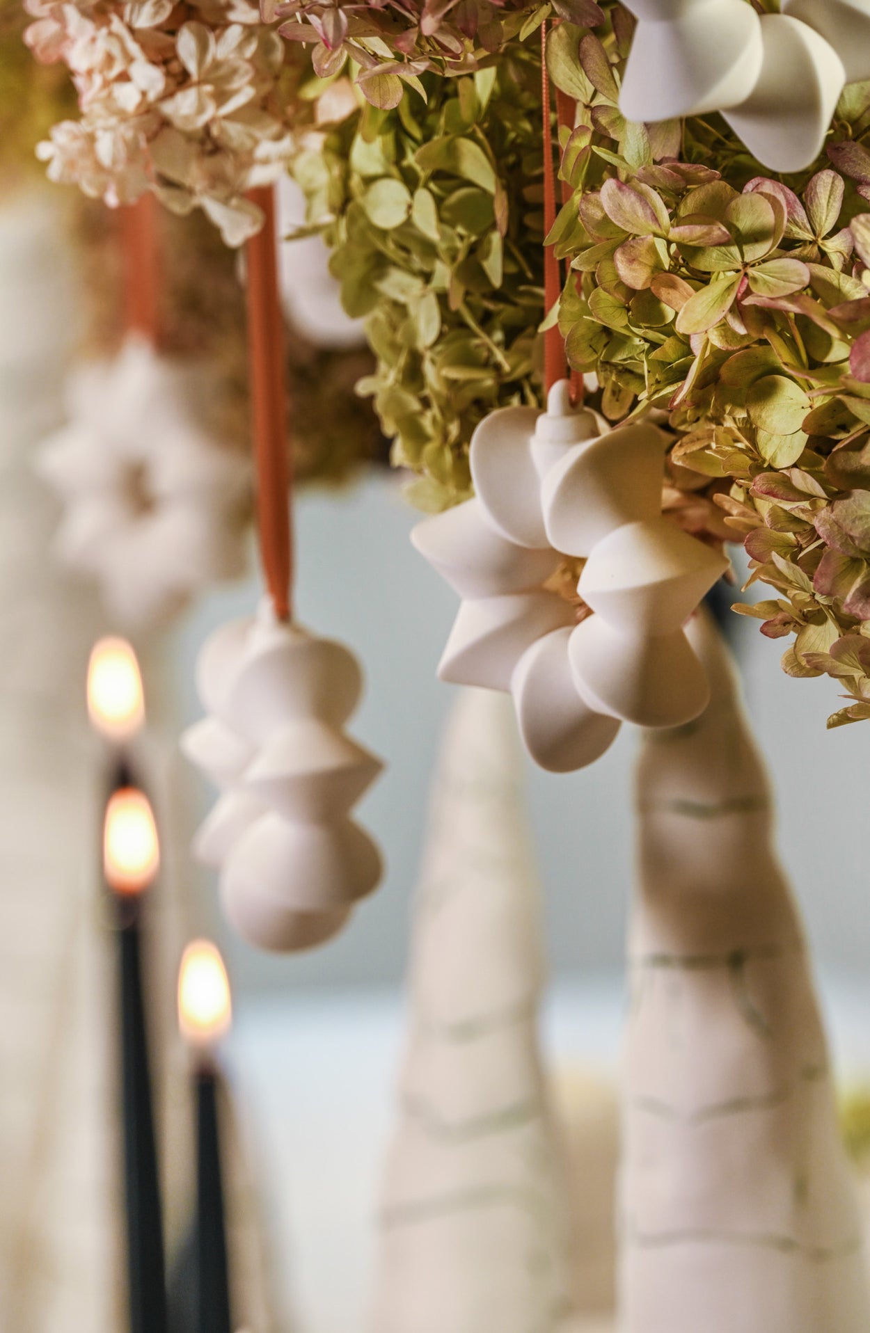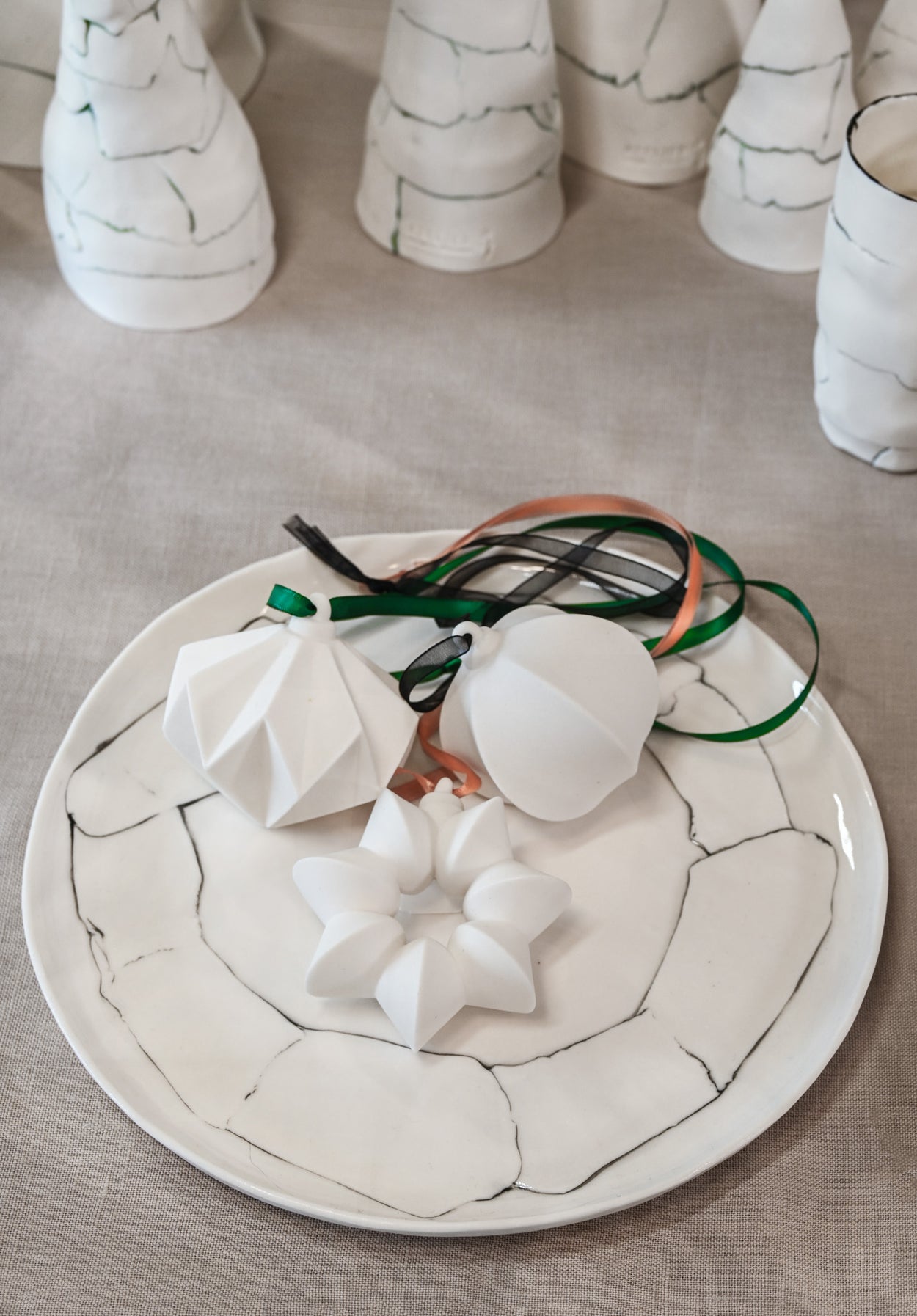 Cette boule de Noël en porcelaine fine est le fruit d'une collaboration entre la céramiste Gréta Jonckheere et de la designer Alexandra Gélinas qui ont uni leurs forces pour célébrer cette matière à la fois exigeante et généreuse. Elle est la consécration d'un rêve de longue date et incarne le constant désir d'explorer cette matière sous de nouveaux angles. Elle est aussi le symbole d'une amitié de l'une pour l'autre.